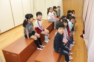 年少さんのお友だちも自分の出番を舞台の幕の後ろで静かに待って
