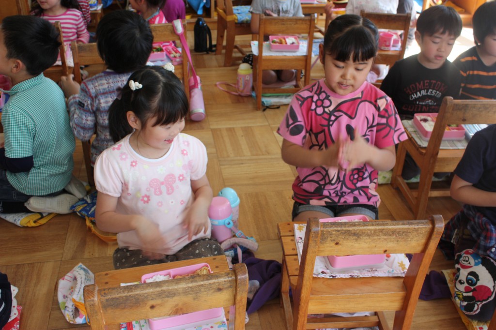 そして年長さんのとっては南八幡幼稚園での最後のお昼ご飯![]()