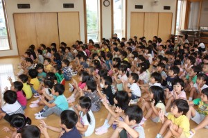 先生とたくさんの動物たちが出てきて背比べをしました![]()