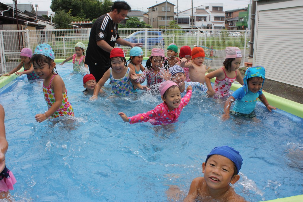 年少さんはプールでお友だちと一緒に遊んでいました![]()