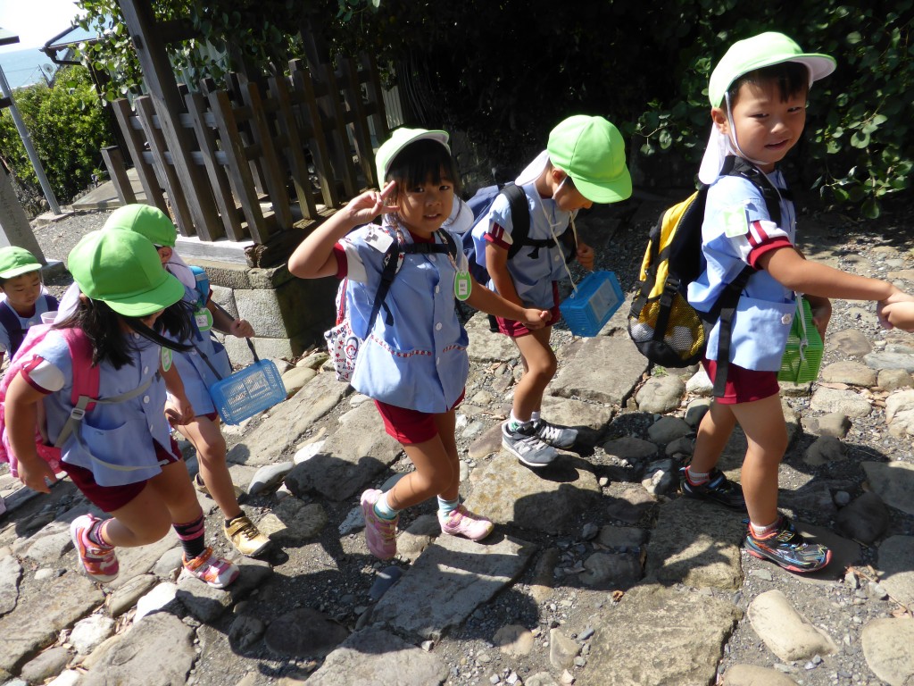 南八幡幼稚園では年長さんの9月に久能山を登り、ロープ