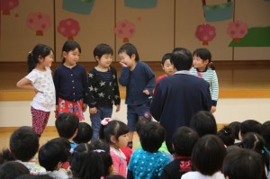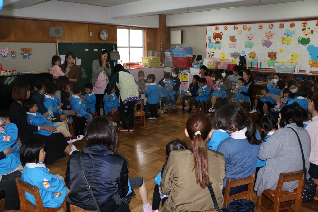 遊戯室に集まりましたが、年長さんがいなくなった分、少し