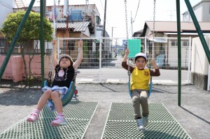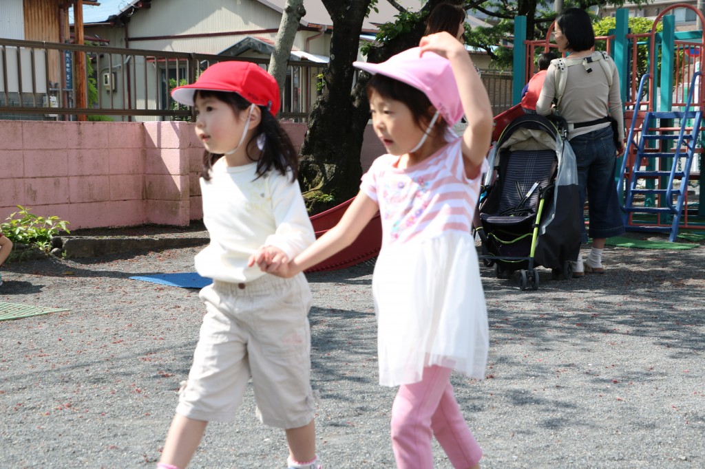 この後、年長さんの女の子が2人来てくれて手をつないで
