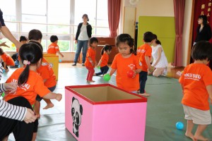 フルーツに見立てたカラーボールをこあらさんとぱんださんにあげました!(^^)!