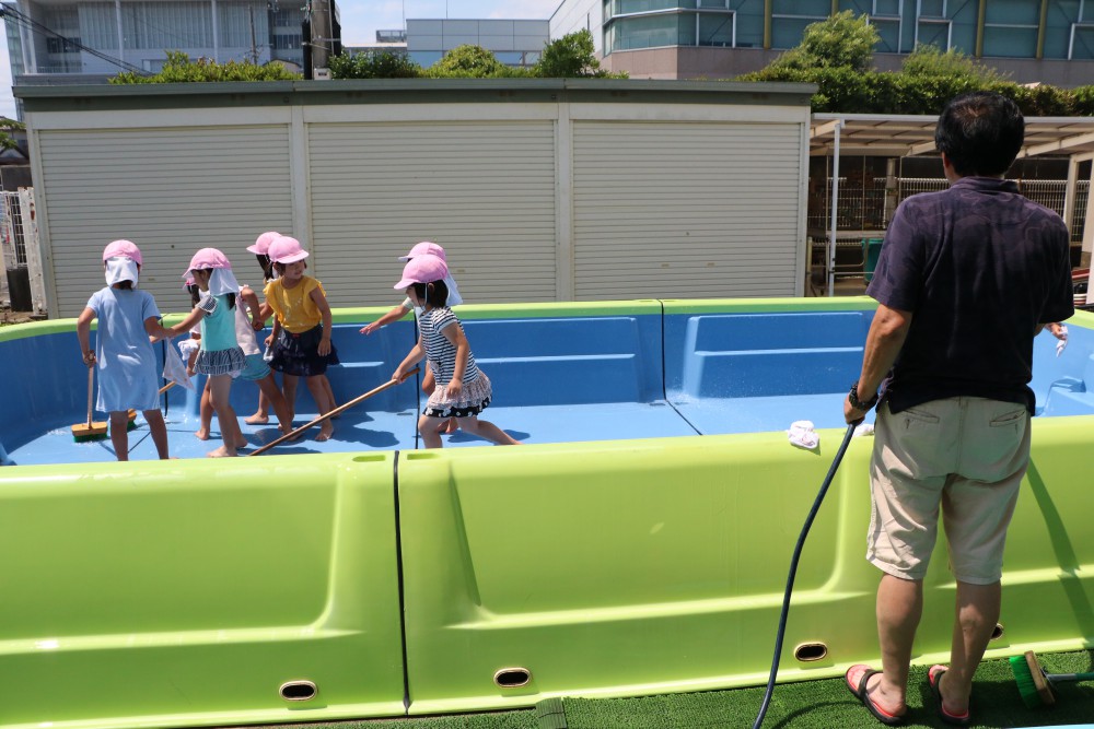 そのプールを年長(さくら組女の子)が掃除してくれました!(^^)!